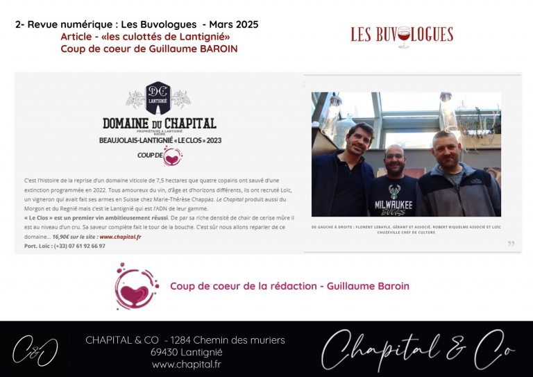 Lantignié réinventé : une jeunesse culottée et prometteuse 16 mai 2025 Chez Chapital & Co, on aime saluer les élans collectifs qui donnent un nouveau souffle au vignoble français. Dans son